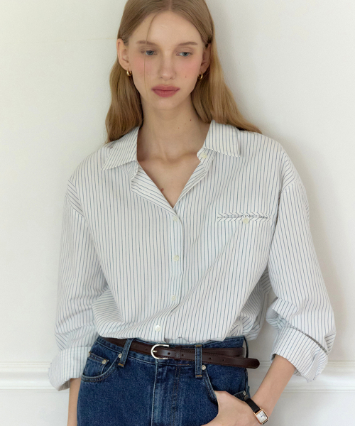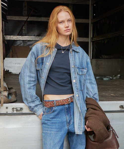 - オックス/デニム イカリ刺繍フードシャツ