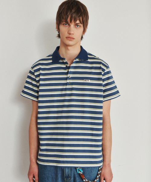 - CBオーバーサイズストライプPKティーシャツ(レッド/ネイビー)