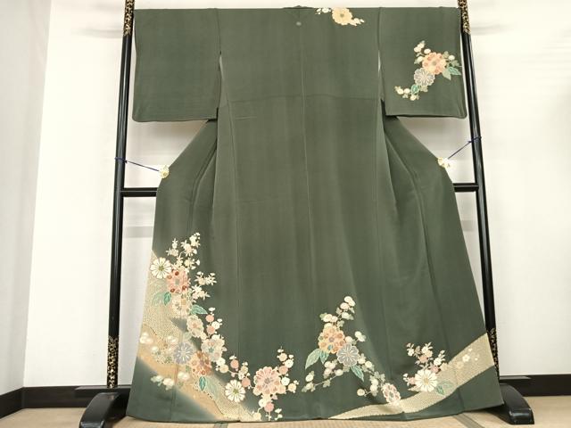 - 平和屋着物●結城紬 100亀甲 飛び亀甲柄 短冊草花文 ますいわ屋扱い 正絹 逸品 DABC2734ud