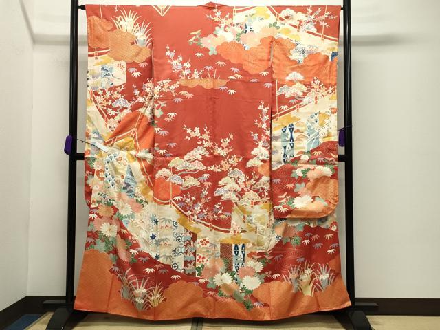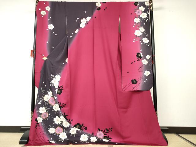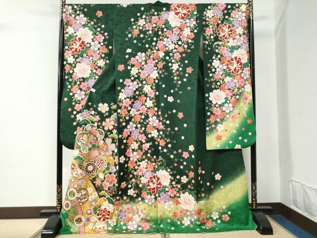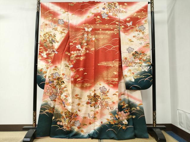- 平和屋着物●豪華振袖 友禅 花鳥文 暈し染め 正絹 逸品 AABG0830ck