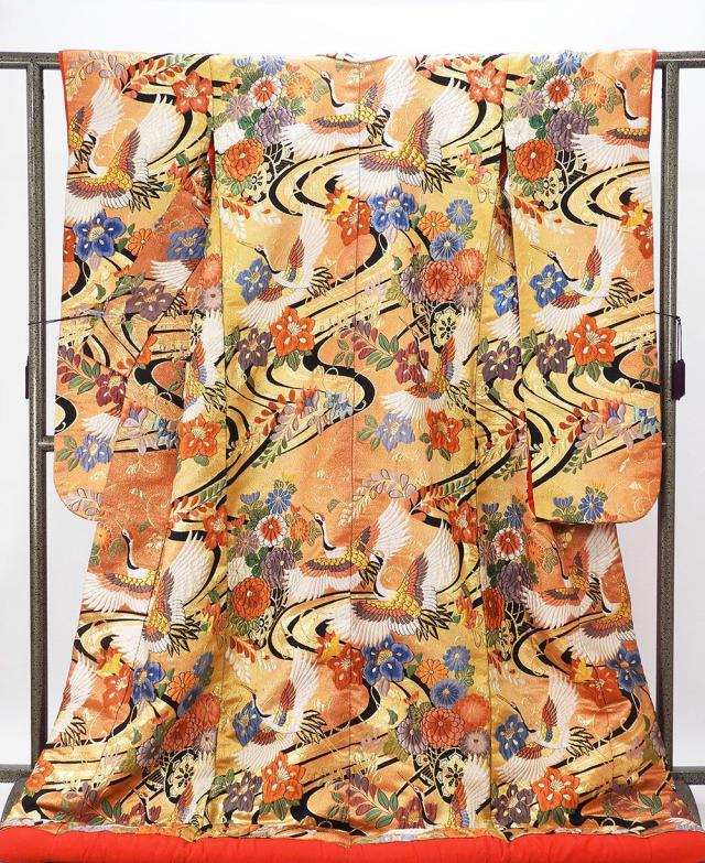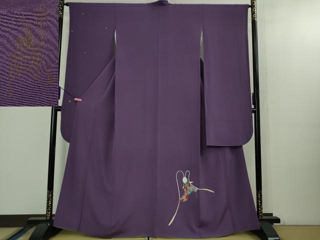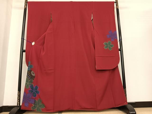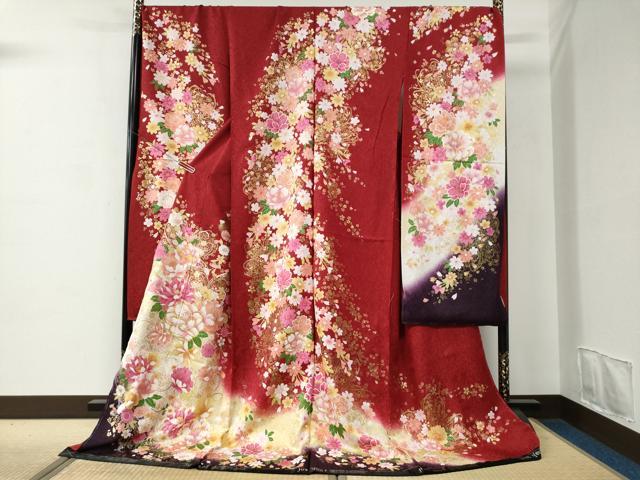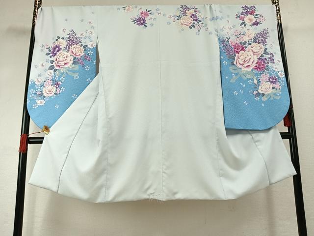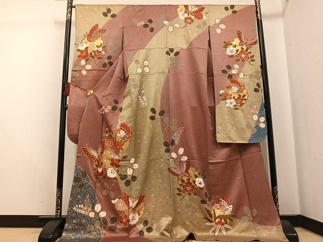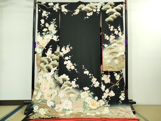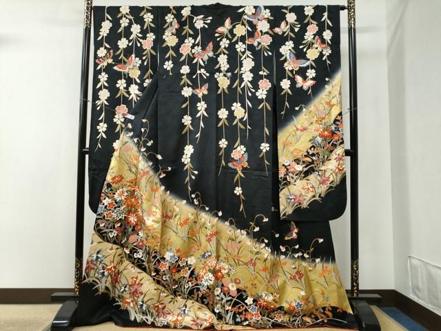 - 平和屋着物●小振袖 二尺袖 草花文 黒地 金彩 AABG4496fy