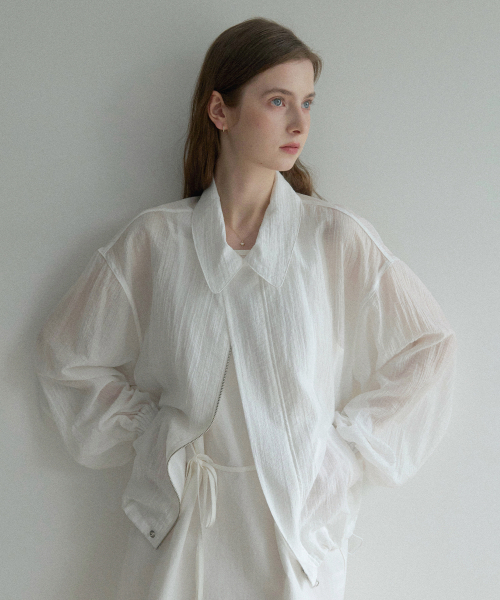 - CRINKLE ZIP UP HOODIE_WHITE