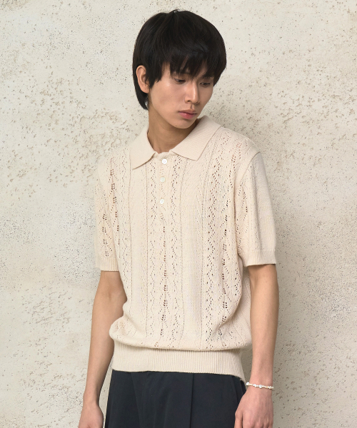 - MU-WI PIN-KNIT 1/2 COLLAR-TEE (Oatmeal)